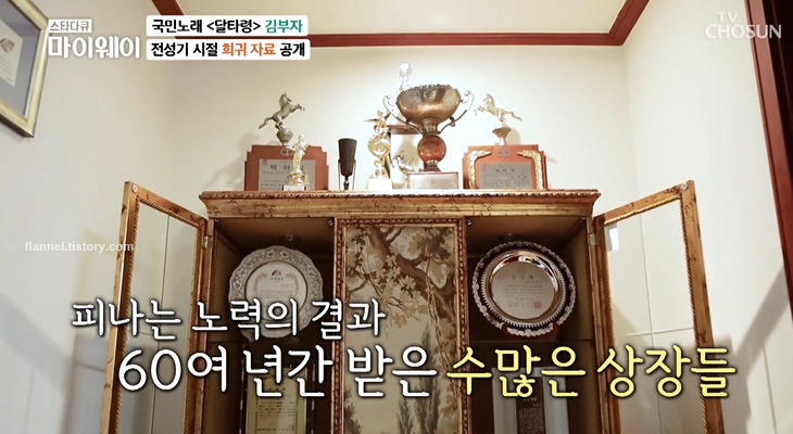 집 곳곳에 역사가 담겼네요. 수많은 상들부터 낡은 풍금, 옛날 녹음기, 노래 테이프까지 박물관 온 듯한 느낌. 1972년도에는 월남을 방문하기도 했어요. 이외에도 파리, 동남아, 중동까지 교민들이 있는 곳이면 어디든 방문해서 공연했대요.