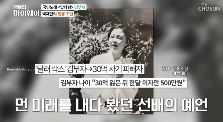 김부자는 박재란을 만나 아픔을 털어놓기도 했어요. 앞서 김부자는 친한 지인에게 30억 피해를 당한 바 있죠. 전남편과 이혼 후 당한 사기라 마음고생이 심했다고 해요.