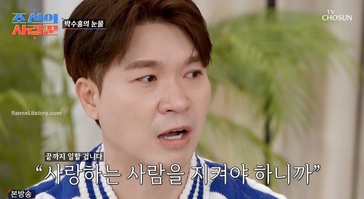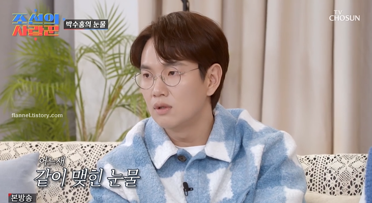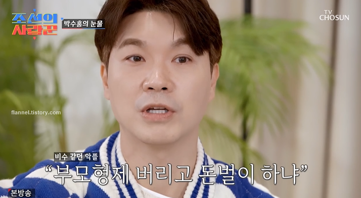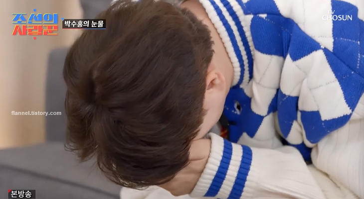 이에 장성규는 "저는 수홍이 형 처음 뵀을 때부터 항상 식사하거나 술자리 둘이 있을 때 가장 먼저 가르쳐주셨던 건 '성규야 너 부모님께 잘해야 한다' '너 가족한테 잘해야 한다'" 그 말을 듣고 바로 오열하는 박수홍. 참고 참고 있었는데 장성규가 부모님 이야기를 꺼내면서 와르르 무너졌어요.