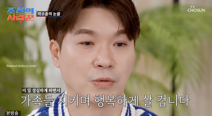 '조선의 사랑꾼' 박수홍의 오열 모습이 전해져 보는 이들을 뭉클하게 했어요. 박수홍은 자신의 결혼식 영상을 보던 중 장성규의 한 마디에 참았던 눈물을 터뜨렸는데요.