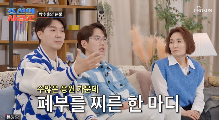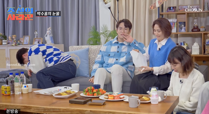 당황한 장성규는 눈이 동그래지고, 엎드려 눈물 흘리던 박수홍은 결국 녹화장을 떠났어요. 대기실에서 펑펑 우는데 그 아픔이 전해져 보는 저도 눈물 나더라고요. 남아 있던 MC들도 같이 눈물 흘림.