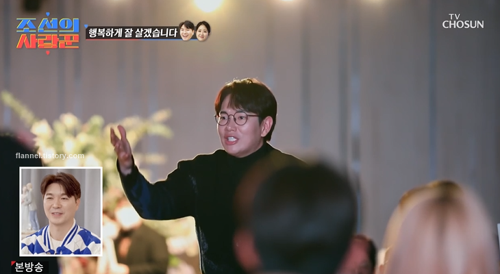 장성규는 결혼식장에서 만세삼창을 했어요. 박수홍 김다예를 위한 만세, 2세를 위해 만세, 장인과 장모님을 위해 만세를 외쳤죠. 이를 보던 박수홍은 이날 게스트로 나온 장성규에게 장인, 장모님 만세를 해줘서 고맙다고 손을 잡았어요. 왜냐하면 자신이 장인어른과 장모님에게 해드린 게 없다고 생각했기 때문. 결혼식장에 부모도, 친척도 안 와서 인사를 못했고 절도 못 드렸기 때문에 마음이 쓰였나 봐요.