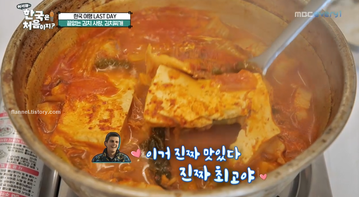 세 친구들 모두 김치를 좋아하더라고요. 그런데 김치찌개 냄비 외국인들이 보기에 너무 더러워 보일 수도.. 저게 맛인데 모르면 더럽다 생각할 수도 있을 것 같은 괜한 오지랖.