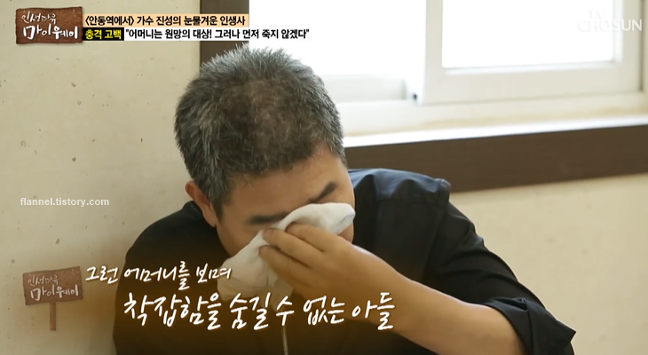 어머니는 아들 진성의 암 투병 소식을 듣고 하늘이 무너졌다고 해요. 진성은 당시 어머니보다 먼저 갈 수는 없다고 생각했대요. 불효를 떠나 마지막까지 이렇게 비참하고 불행하게 가야 하나 싶었대요. 그래서 더 발버둥 쳤다고 하네요. 이야기를 듣고 눈물 흘리는 어머니.