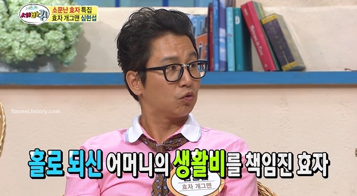 '개그콘서트'로 인기를 얻게 되자 심현섭은 홀로 계신 어머니에게 생활비로 매달 700만 원 정도씩 드렸대요. 그로부터 10년 뒤 어머니가 심현섭에게 통장을 줬다는데 고스란히 용돈을 모두 저축했다고 하네요. 아들 결혼을 위해 꼼꼼히 모아두신 것.