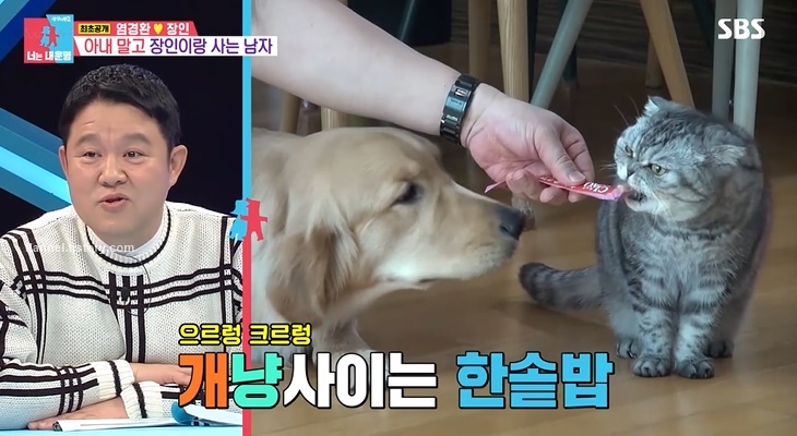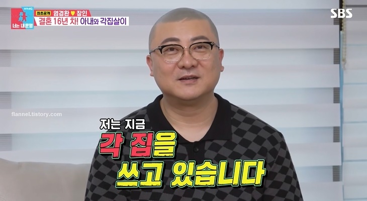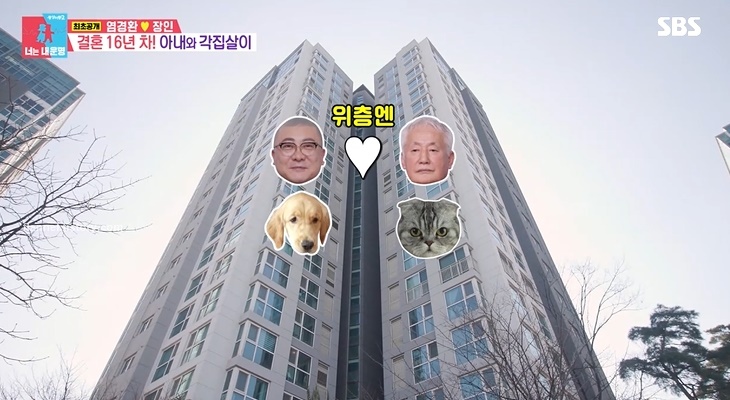 그렇다면 왜 아내가 아닌 장인과 함께 살고 있을까? 염경환 말로는 각 집을 쓰고 있다고 하네요. 아내와 장모님, 아이들은 아래층에 살고 위층엔 염경환과 장인, 반려견, 반려묘가 함께 살고 있대요. 신기한 두 집 살림이네요.