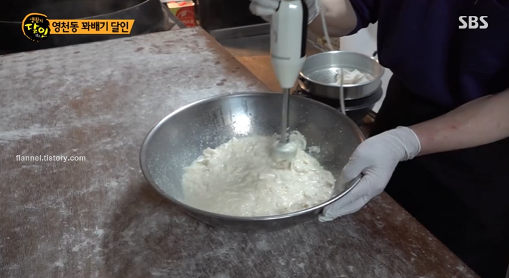 달인의 꽈배기는 반죽부터 차이가 나더라고요. 기본 재료는 똑같지만 특별히 추가되는 한 두 가지가 있대요.