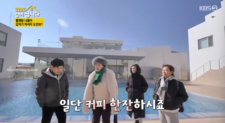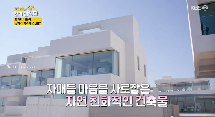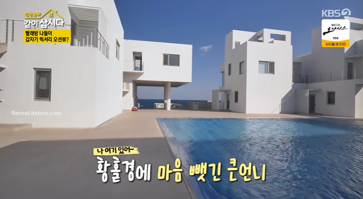 '박원숙의 같이 삽시다3' 포항 호미곶 인기 카페가 전해졌어요. 푸른 바다 바로 앞에 하얀 건물로 지어져 정말 아름답더라고요. 건물이 너무 큰 거 아닌가 싶었는데 풀빌라와 카페를 함께 운영하고 있었네요.