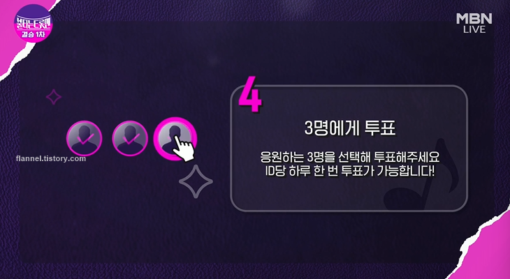 4. 응원하는 3명에서 투표, ID당 하루 한 번 투표 가능