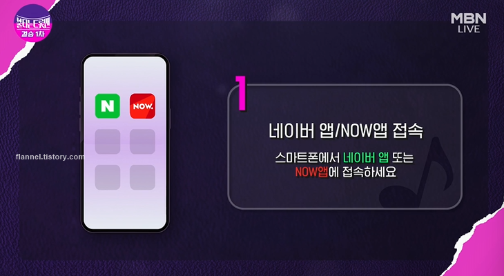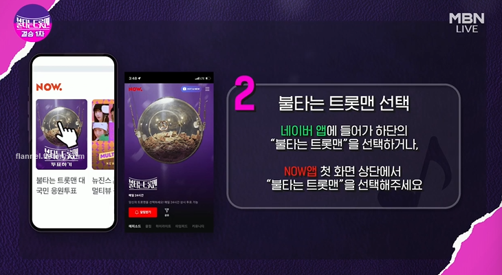 2. 네이버 앱 하단 '불타는 트롯맨' 선택, 또는 NOW앱 첫 화면 상단 '불타는 트롯맨' 선택