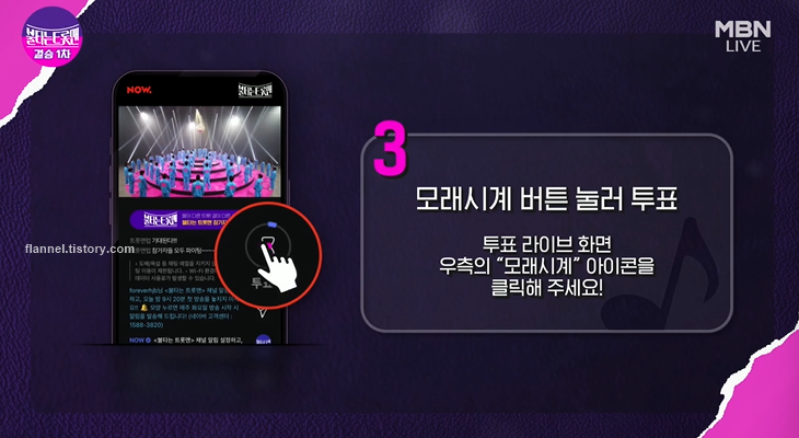 3. 투표 라이브 화면 우측 '모래시계' 아이콘 클릭