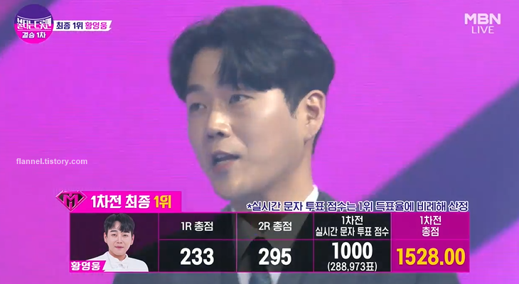 "일단 감사드리고 그리고 죄송합니다. 혹시나 제가 다음 최종 1위가 됐을 때 제가 상금에 대해서 사회에 기부를 하고 싶습니다. 이런 말씀 전해드리고 싶었습니다. 감사합니다"
