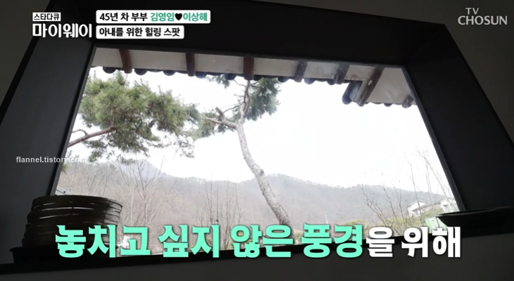 김영임 집 아파트도 한강뷰로 너무 멋진데, 시골에 한옥 연습실도 따로 있더라고요. 연습은 물론 모임용 세컨하우스래요. 연습실 뷰도 너무 좋아요.