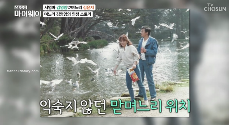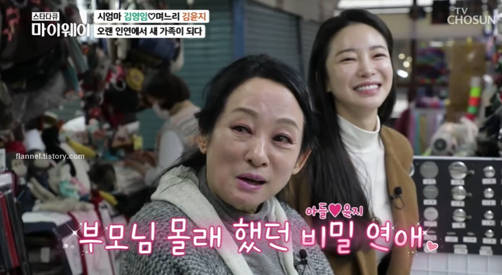 며느리 김윤지와 데이트하는 김영임. 김영임은 며느리를 초등학교 때부터 알았대요. 김윤지 아버지는 사업가였는데 이상해와 절친한 친구 사이였다고 하네요. 아들과 김윤지는 부모님들 몰래 비밀연애를 했었대요.