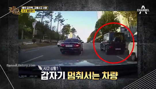 교통사고 사망 당시 블랙박스가 공개되기도 했어요. 김주혁 차량은 잠시 멈춰 서더니 앞서가던 다른 차량과 충돌 후 갑자기 인도를 향해 빠르게 돌진하기 시작했어요. 오르막을 빠르게 돌진하려면 엑셀을 계속 밟고 있어야 하는데 이 부분이 의문으로 남아있어요. 사망 원인은 부검을 통해 확인가능하지만, 사고원인은 알기 쉽지 않다고 하네요.