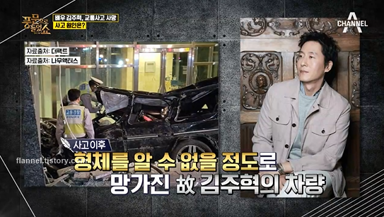 독일 군부대가 개발한 자동차라 굉장히 튼튼해서 구조 당시 차량 절단에도 시간을 많이 지체했다고 하네요. 또 하나의 시각은 김주혁이 사고가 더 커지는 것을 막기 위해 사람이 없는 곳으로 돌진했을 거라는 추측이에요.