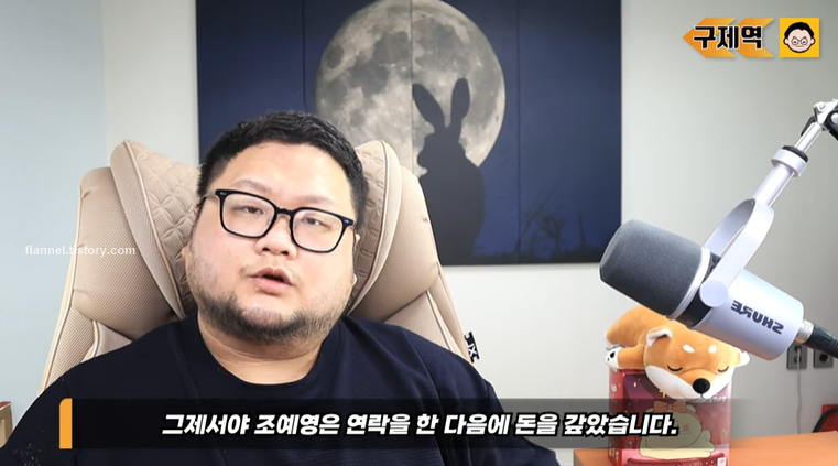 그래서 팬은 구제역에게 제보한 뒤 자신의 카카오톡 프로필 사진, 배경 화면을 구제역 유튜브 화면으로 바꿔놨대요. 그제야 조예영이 연락한 다음 바로 돈을 갚았다고 하네요. 돈을 갚으면서 잘 썼다거나 하는 인사는 없었대요.