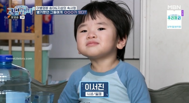그런데 첫째 아들에 이어 둘째 아들 4살 이서진, 셋째 아들 2살 이서호까지 등장. 별거한다더니 아들 셋을 두었더라고요. 반지하에서 살다가 돈을 모아 보증금 500만 원에 월세 60만 원 집으로 이사 왔대요.