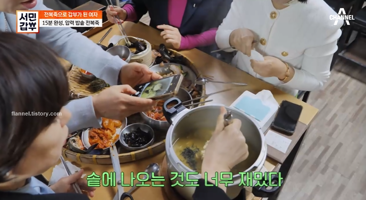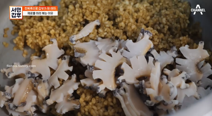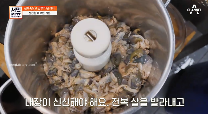 이 식당의 인기비결은 무엇일까? 메뉴는 오직 하나 전복죽이래요. 오직 전복만 넣어서 끓이기 때문에 전복 원물에 엄청 신경 쓰고 있대요. 매일 아침 완도산 활전복을 들여오고 있다고 하네요.