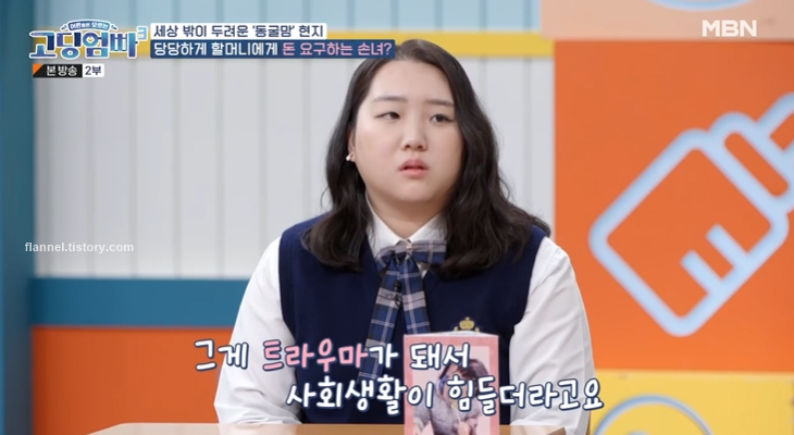현지는 일자리에 대한 두려움이 있대요. 임신했을 때 휴대폰 대리점에서 일을 했다는데 잠시 화장실을 간 사이 '어린애가 임신해서 고생이다'라는 험담을 목격했대요. 그게 트라우마가 돼서 사회생활이 힘들다고 하네요. 할머니가 돈을 안 주니 오히려 짜증 내는 현지.. 속상한 할머니.. 아효..