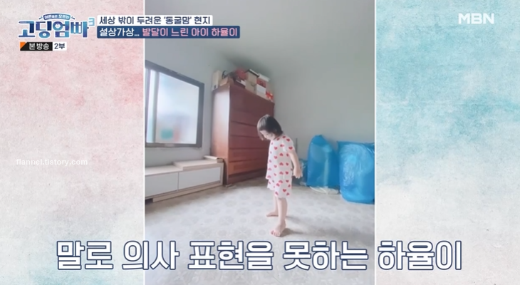 하율이는 발달이 늦은 편이래요. 6살인데도 말로 의사 표현도 못하는 상황.. 검사 결과 하율이는 현재 27개월 수준으로 사회성, 표현 언어가 정상보다 많은 낮은 편이에요. 자폐 스펙트럼적 요소들과 지적 장애도 의심된다고.. 치료가 시급한 상황.