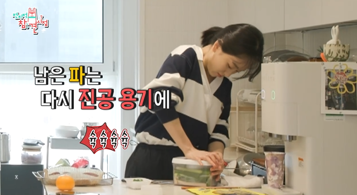 원진아가 1인 가구에게 꼭 필요하다고 한 진공용기예요. 해당 제품은 '바퀜' 브랜드 상품인데요. 바람을 슉슉 빼서 진공 상태에서 재료를 보관하기 때문에 더 오래간다고 해요. 채소류는 일반의 경우 이틀인데, 이 용기를 사용하면 9일까지도 보관 가능하다고 하네요. 과일류는 무려 21일, 과자류는 365일, 빵류는 5일까지도 유지해 준대요. 친환경 소재에 무독성 항균처리까지 돼서 더 건강하게 사용할 수 있겠어요.