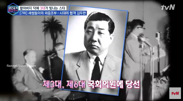 송일국 가족, 집안이 궁금하기도 했어요. 송일국 외할아버지는 1950년대 종로 일대를 주름잡은 김두한으로 알려졌죠. 국민에게 두터운 지지를 얻은 김두한은 제3대, 제6대 국회의원에 당선된 바 있어요. 김두한 친아버지는 청산리 전투 지휘관으로 유명한 교육자이자 군인, 독립유공자 김좌진 장군이에요.