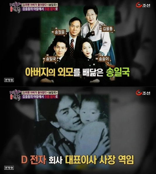 송일국 아버지 송정웅은 D전자 대표이사를 역임했으며 정년퇴임 후 사업가로 변신했어요. 엄청난 미남이라 D자동차 지면 광고 모델로 활동하기도 했다네요. 어머니 김을동은 배우 출신 정치인으로 18-19대 국회의원으로 재직한 바 있어요. 두 사람은 중앙대학교 동기래요.