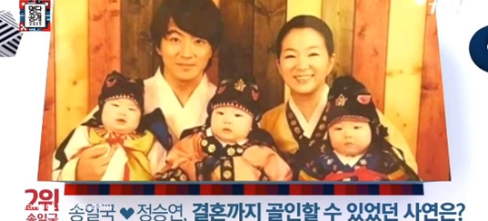 한때 송일국은 아내와 정략 결혼했다는 오해를 받기도 했어요. 송일국 집안이나 아내 직업이 판사다 보니 그런 루머가 돈 것인데요. 이에 대해 송일국은 연애 결혼했다며 부인했어요. 처음 만났을 때부터 너무 좋아서 가게 문 닫을 때까지 이야기했다고 하네요. 아내의 바른 모습에 첫눈에 반했대요. 그래서 드라마 '주몽' 촬영으로 바쁠 때에도 아내를 보기 위해 달려갔대요.