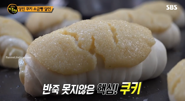 쿠키소금빵은 소보로빵과 소금빵이 합쳐진 맛이래요. 과하지 않게 고소하고 간도 적당하고 달콤한 맛에 바삭한 식감까지 갖췄어요. 달인은 일본 생활을 하며 피나는 노력으로 지금의 쿠키소금빵을 만들어냈대요. 그래서 그런지 기존 소금빵과는 만드는 방법이 좀 다르더라고요. 롤링하면서 최대한 얇게 마는 것이 기술. 이렇게 하면 식감에서 완전 차이가 난대요.