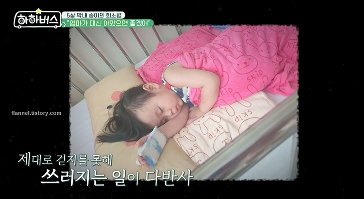 그때까지도 하하와 별은 딸에게 병이 생겼을 거라는 생각은 전혀 못했대요. 그런데 어느 날부터 걸음이 이상해지기 시작했고 제대로 걷지 못해 쓰러지는 일이 다반사였대요. 그렇게 딸 송이는 길랭바레 증후군이라는 희소병을 진단받았다고. 이 질환은 성인도 버티기 힘든 통증을 유발한다고 해요.