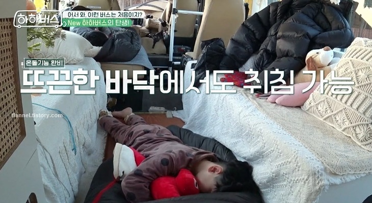 좌석은 쫙 펼치면 침대로 변신해요. 뜨끈한 바닥에서도 취침 가능. 전국을 돌 거라고 하는데 기대되네요~
