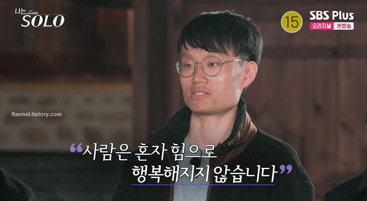 "현숙님이 약간 저는 이번 기수에 제 입장에서는 굉장한 복병이었어요. 제가 만나보지 못했던 타입. 이성 감정이 안 들어야 하는데 또 이성 감정이 있단 말이에요. 보이시하다고 해야 하나 그런 스타일에 제가 끌리지 않았거든요. 근데 이상하게 좀.. 귀엽더라고요. 그래서 한 번 만나보자, 어떻게든 내 감정이 어떤지 결정하기에는 4박 5일은 짧다, '한 번 만나보자' 이런 의미입니다"