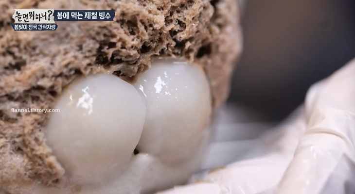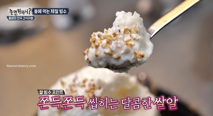 다음에는 정말 특이한 쌀빙수가 등장했어요. 정말 고봉밥 같은 비주얼이에요. 맛이 너무 궁금한데 쫀득쫀득 씹히는 달콤한 쌀알이 특징이래요.