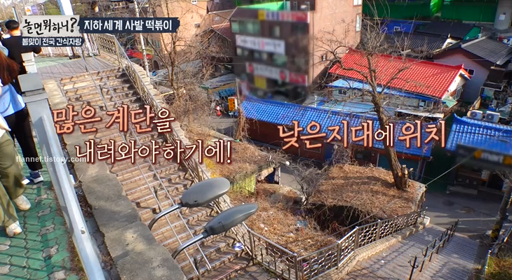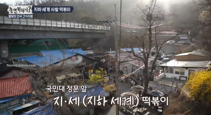'놀면뭐하니' 국민대 정문 앞 지하세계 사발 떡볶이 맛집이 등장했어요. 떡볶이 집이 계단 타고 내려가야 해서 지하세계로 불리는 것 같아요. 줄여서 지세라고 부른대요.
