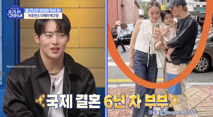 '물 건너온 아빠들'에 퍼포먼스 디렉터 백구영이 새롭게 합류했어요. 백구영은 원밀리언 소속으로 최근 안무가로 활발히 활동 중인데요. 아내는 일본인으로 4년 연애 끝에 결혼에 골인했어요. 2017년 결혼식 당시 동방신기, 슈퍼주니어, 엑소 등 SM 소속 가수들이 대거 참석해 화제를 모으기도 했죠.