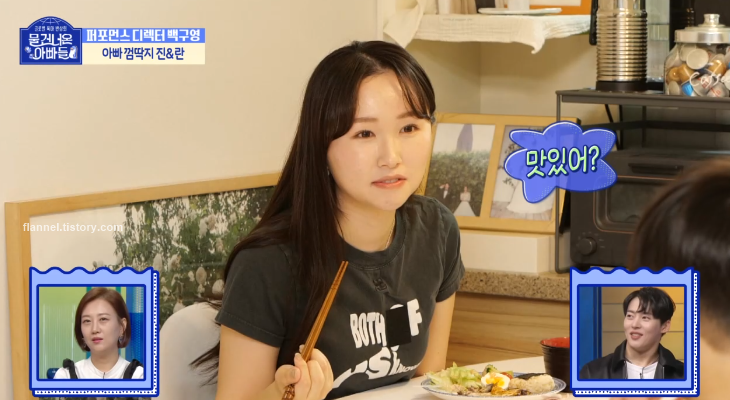 국제 결혼한 지 6년 차 된 백구영. 첫 만남이 특이한데 백구영은 춤을 추다가 돌연 L.A.로 공부하러 유학을 떠났었대요. 그때 학생들이 자주 가는 바가 있었는데 어느 날 아내가 놀러 왔다고 하네요. 그때 첫눈에 반했다고.
