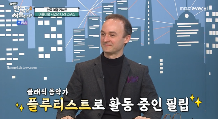 '어서와 한국은 처음이지?' 스위스 편이 전해졌어요. 이번 호스트는 클래식 음악가 플루티스트로 활동 중인 필립인데요. 한국에 오기 전 독일에서는 오케스트라 일을 하면서 대학교 교수로도 재직했대요. 이후 한국의 한 대학교로 파견 오면서 한국 생활을 시작했대요. 하버드에서 경제학을 공부한 지니어스이기도 해요.