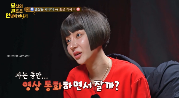 이에 아내는 남편이 의심된다며 서울에서 자고 천안으로 다시 출근해 달라고 요청하고 있어요. 하지만 남편은 연애 기간 4년 동안 여자 문제를 일으킨 적이 없다며 믿어달라는 모습을 보였죠. 남편은 출장 가는 동안 어떻게 하면 믿어줄 거냐고 물었고, 아내는 자는 동안 영상 통화를 하자고 말하네요. 그러자 그건 집착이라는 남편.