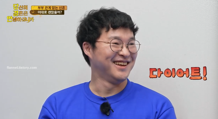 남편은 아내 말을 인정하며 다이어트를 안 해서 아내가 가족처럼 보인다고 말했어요. 집에 가면 서로 벗고 있다고 하네요. 술을 마시면 욕구가 생기긴 하지만 아이가 생길까 봐 걱정인 것도 있다고 해요. 부부는 현재 맞벌이 무자녀 가정이라고 하네요.