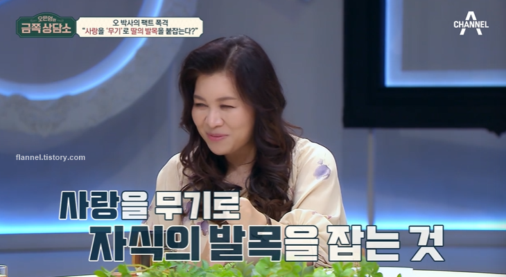 무엇보다 오은영은 애인에 대한 사랑과 부모의 대한 사랑은 별개라고 덧붙이기도 했어요. 두 감정을 같은 저울에 놓고 비교하지 않는다는 것. 어느 하나가 커진다고 걱정할 필요가 없다는 걸 조언했어요.