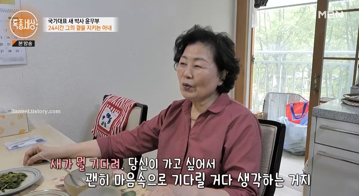 뇌경색도 철원으로 두루미를 보러 갔다가 온 거래요. 부인은 집에서 있었으면 좋겠는데 자꾸 나가는 남편을 엄청 걱정하더라고요. 그럼에도 윤무부는 새가 자신을 기다린다며 새에 대한 멈출 수 없는 애정을 보였죠.