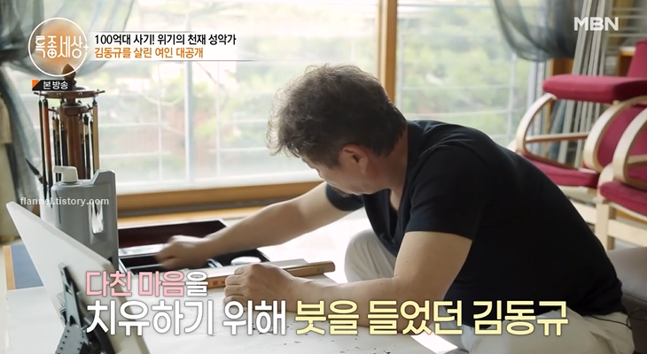 제일 친한 지인에게 100억대 사기도 당한 김동규. 평생 모은 돈과 남의 돈까지 엮여 김동규가 책임져야 하는 상황이었대요. 그때 약이나 수면제 유혹도 받았었다고 하네요. 다친 마음을 치유하기 위해 붓을 잡기 시작했대요.