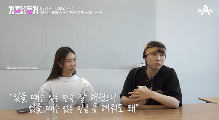 그렇게 3년 동안 슬럼프의 시간을 보냈고 돈도 바닥나기 시작했대요. 그때 여자친구 영주가 "있을 때는 있는 만큼 잘해줬으니 없을 때는 없는 만큼 못 해줘도 돼"라고 했다네요. 그때 "이 여자다!" 싶었대요. 연애 3, 4년 차부터 결혼까지 생각했다고. 그리고 작년에 제주도 '영주산'에서 프러포즈를 했대요. 결혼은 내년 4월 예정이라고 하네요.