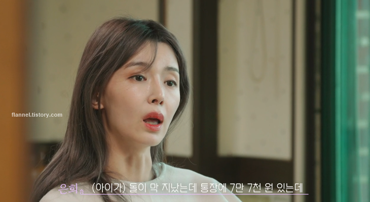 은희는 이혼 숙려 기간 동안 많이 힘들었던 거 같아요. 홀로 아기 보면서 일까지 했는데 통장에는 단돈 7만 7천 원밖에 없었다고 하네요. 그러면서 눈물 흘리는 은희. 그때 남편은 술 먹고 친구들이랑 놀지 않았냐며 원망을 쏟아내네요.