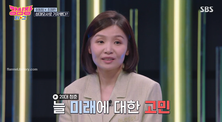 기자로 첫 사회생활을 시작한 조정린. 생각보다 훨씬 힘들었다고 해요. 그때마다 강호동이 말해준 '예능인은 지치는 거 아니다'라는 말을 몇 번이고 떠올렸대요.