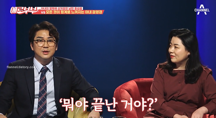 또 홍승범은 아내의 직설적인 말투에 불만을 표했어요. 관계를 하다가 강아지가 난입했는데 몰입이 깨지자 권영경이 '뭐야 끝난 거야? 벌써 끝났어?'라고 했대요. 그 말에 크게 상처받았다고 하네요.