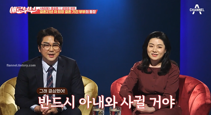 홍승범은 자신이 갱년기를 겪고 있는 것 같다고 덧붙이기도 했어요. 어느순간부터 아무리 야한 장면을 봐도 무감각해졌대요. 슬픈 드라마를 보면 같이 울기도 하고, 아내 말투가 남자처럼 들릴 때도 있대요. 또한 아내와 21년 동안 계속 붙어 있었기 때문에, 떨어진 시간은 10일도 안 될 거래요. 그래서 부부관계에 대한 소중함을 모르는 것 같기도 하대요.