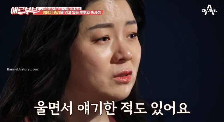 권영경은 그동안 남편에게 쌓인 게 많았대요. 울면서 부부관계를 하자고 얘기할 때도 있었다네요. 그때 자존심이 많이 상했었고 구걸하는 것 같아 상처받았대요. 생계를 위해 생활력이 강해지다 보니 어느 순간 자신이 남자가 되어 버린 것 같다고도 하네요.