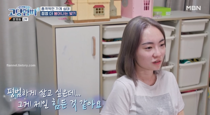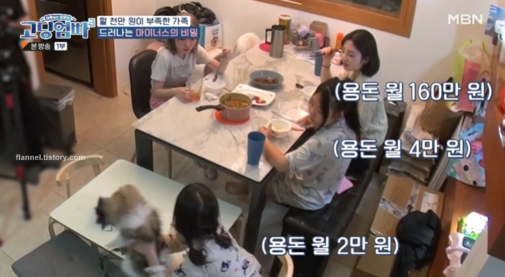 현재 집은 보증금 3천만 원에 월세 150만 원이래요. 아이들 모두 학원을 여러 군데 다녀서 사교육에 200만 원, 친동생 연기 학원비 40만 원에 용돈 160만 원까지 준대요. 청소용역도 불러서 월 30만 원이 나가는 상황. 안마의자 렌탈비 14만 원, 음식물 처리기 식기세척기 정수기 렌탈 비용은 월 약 10만 원. 명품가방 1600만 원.
